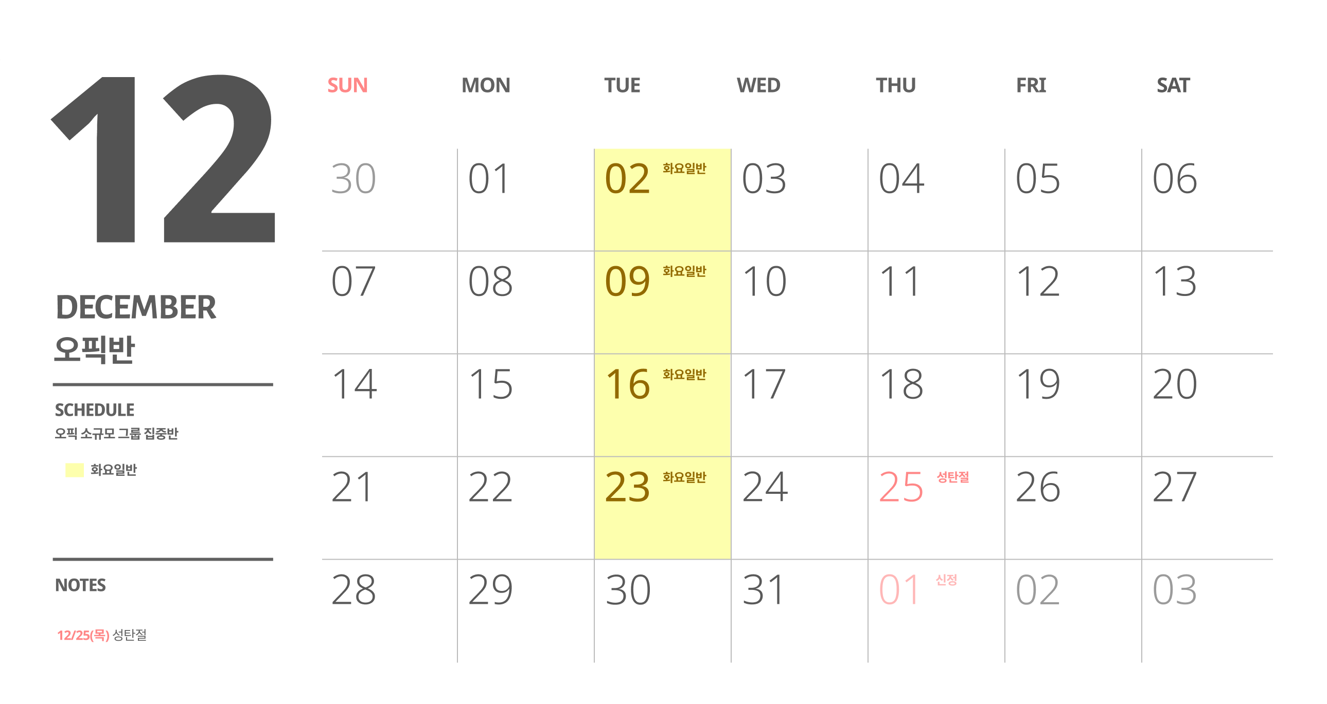 *해당 수강권은 12월 수강 신청이며, 수강 기간은 1개월(4주) 입니다.