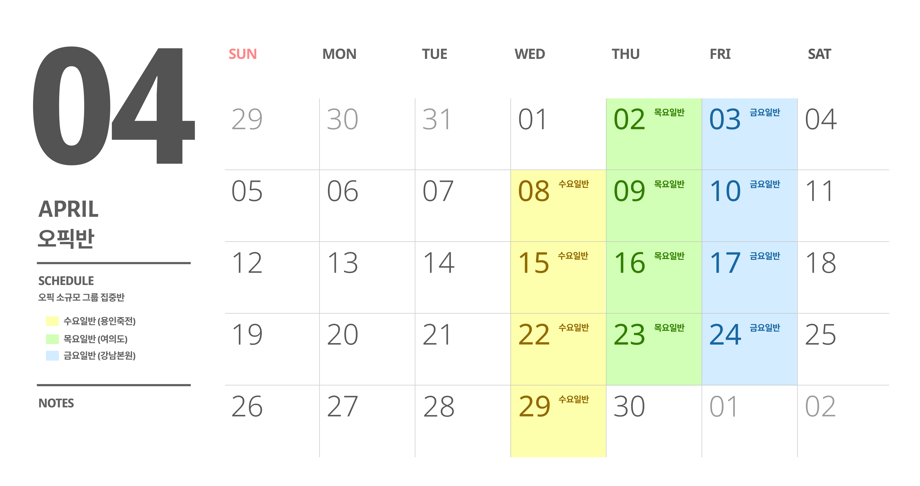 *해당 수강권은 4월 수강 신청이며, 수강 기간은 1개월(4주) 입니다.