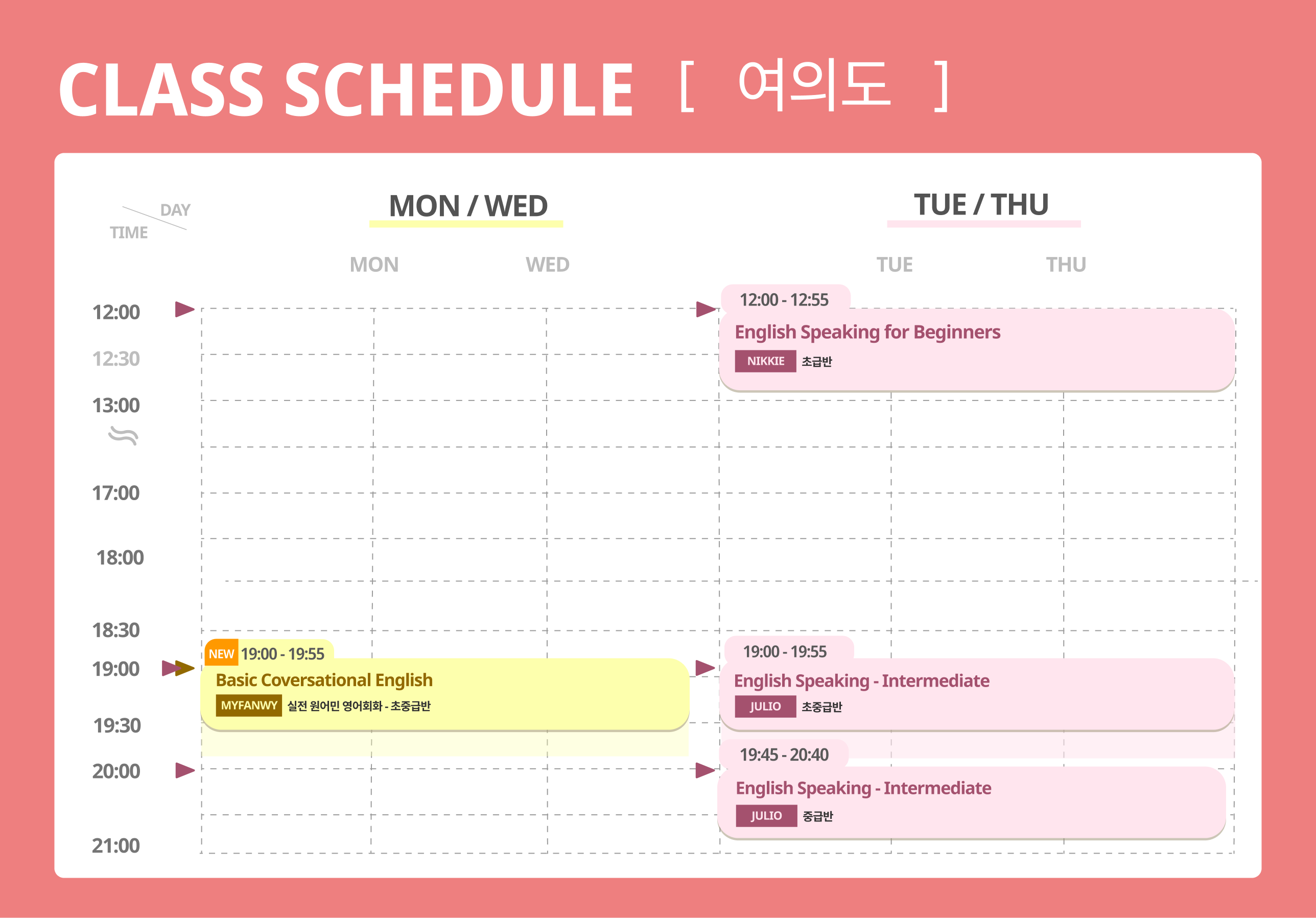 ※ 실제 개설 요일·시간 및 레벨 구성은 상담 후 안내드립니다.